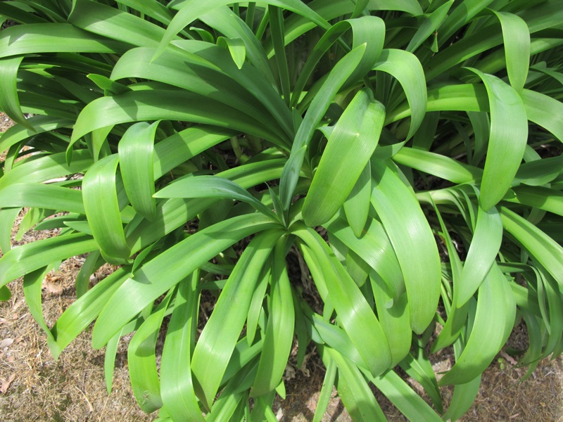 An evergreen, perennial plant growing in leafy clumps to 60cm high, reproducing from rhizomes and seeds. Strap-like leaves about 30mm wide and flower heads in big clusters, mainly blue or white. Flowers have six petals, in a trumpet-like shape, up to 150 flowers on the flower head. Flowering is from October to February. Dead flower-heads last for many months containing seeds.