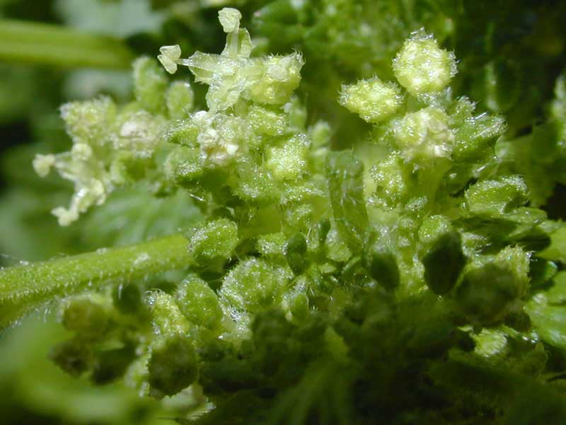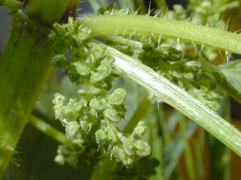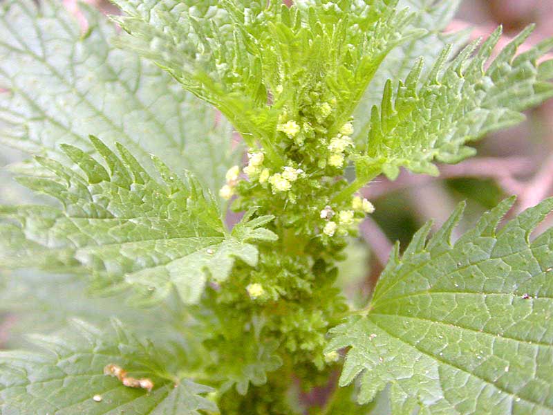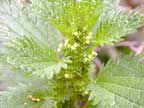 0.3 - 1.2m tall plant (depending on situation), covered with stinging hairs. Leaves heart shaped, toothed and opposite. Flowers green, in catkins.