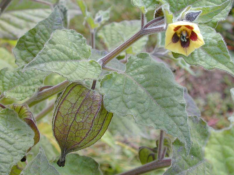 Black nightshade has similar, but smaller leaves. Cape gooseberry (Physalis peruviana) is similar but has yellow flowers and velvety leaves. It is very closely related and is probably of similar toxicity if any parts other than the ripe berries are eaten.
