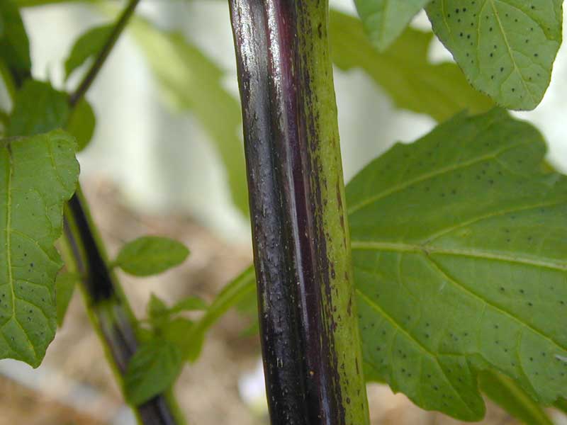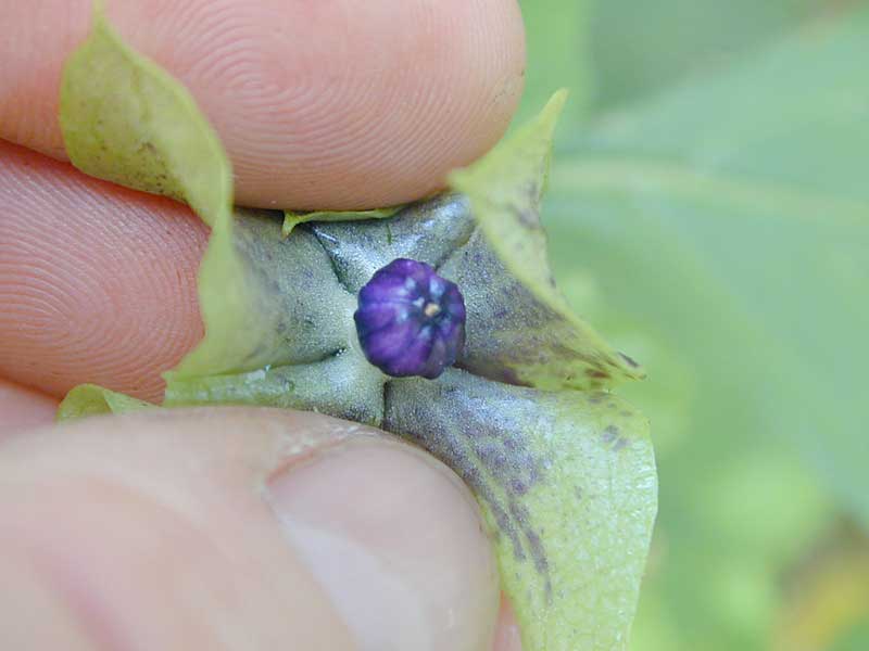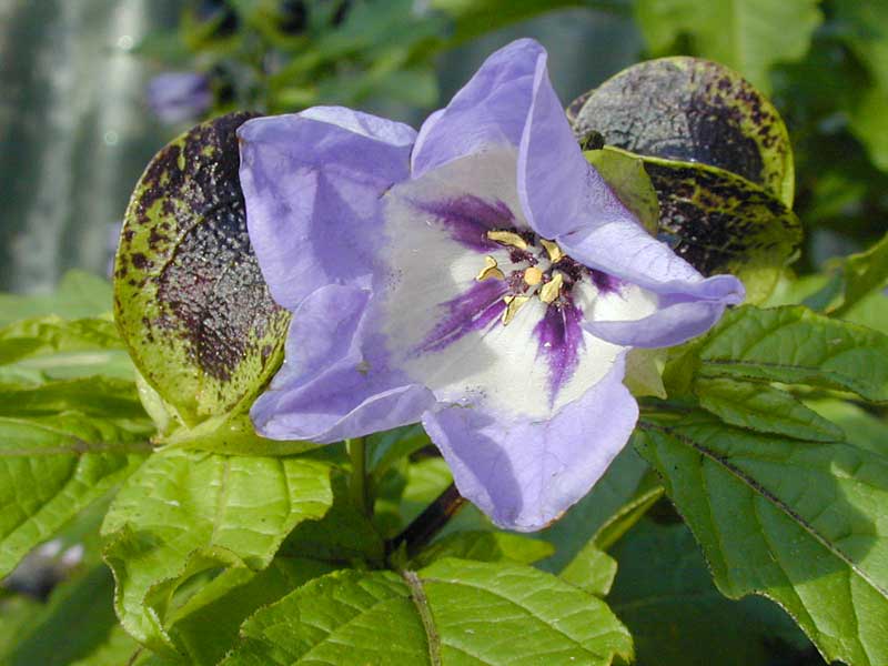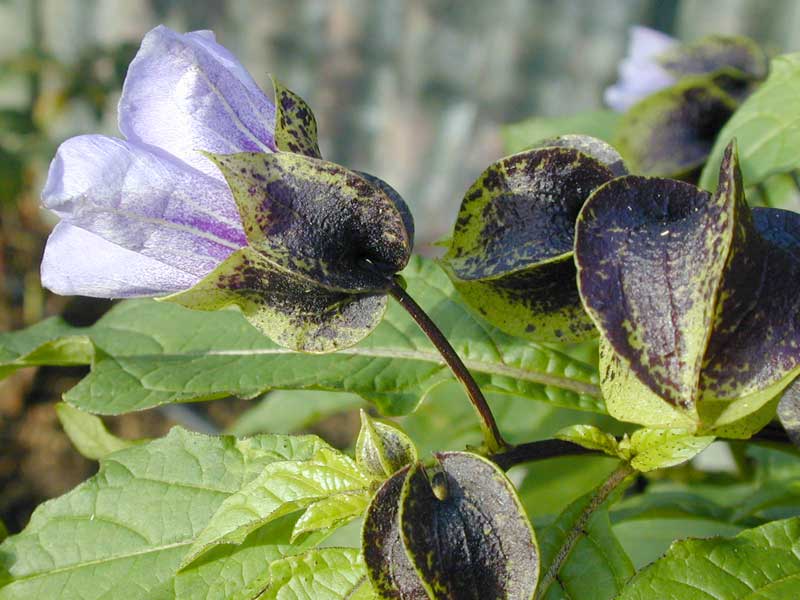 An erect plant, usually about 600 - 900mm high. Leaves hairless and toothed, stems often have purple steaks. Distinctive blue flowers growing from a large calyx. The fruit forms inside the calyx.