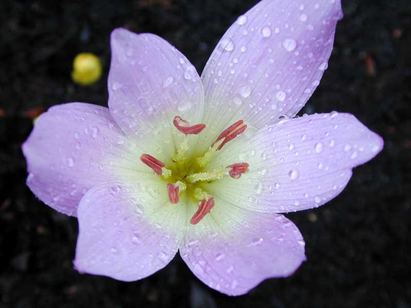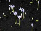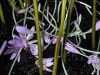 25 - 30 cm tall, autumn flowering corm, produces leaves in spring, with up to eight long tubed, wine glass shaped purple, pink or white flowers similar to a crocus. 3 - 5 strap shaped, semi erect, basal glossy leaves in spring.
