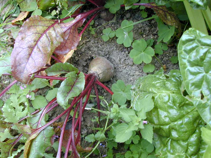 Garden beetroot plant growing among a variety ot toxic weeds(August, Manawatu).