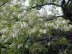 A large deciduous tree (25m). It has pale green feathery compound leaves. The flowers are white, fragrant, pealike and hang in clusters. Pod glabrous, irregularly oblong, 2 - 8 seeded, 35 - 80 mm long; seeds smooth, brown spotted, oblong. Young branches have thorns.
