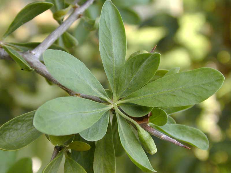 Typical leaf shape. Note the thorn! (February, Manawatu).