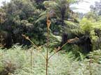 Perennial herb which spreads by stout, black horizontal rootstocks often more than a metre long. The fronds are large and broadly triangular being hairy on the underside. Orange stems.