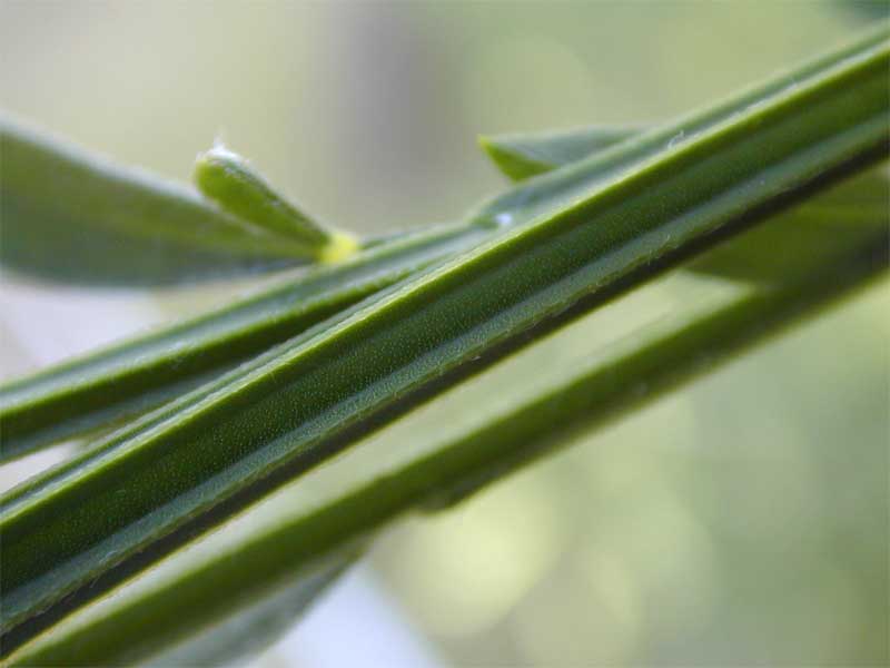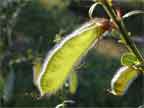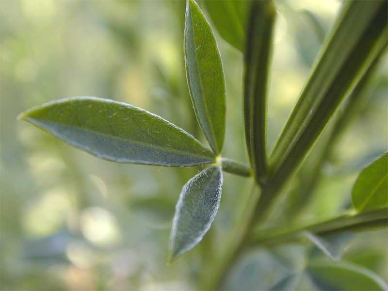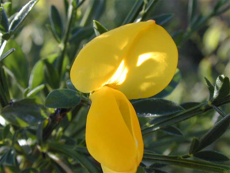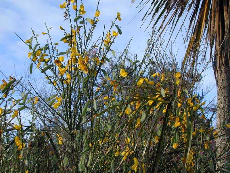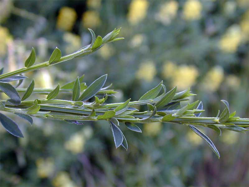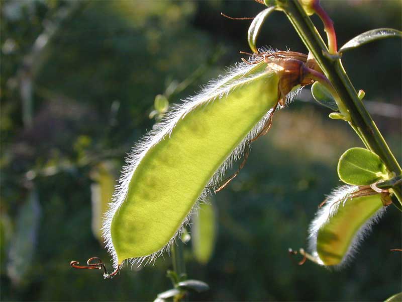 Small shrub, usually about 2m tall. Stems ridged with no spines. Leaves lanceolate and trefoil. Yellow pea-type flowers. Fruit - hairy pods which turn black when ripe.