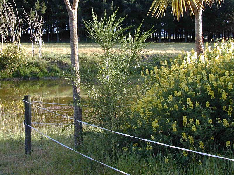 Various European spp of broom (mostly Genista spp) are grown in gardens. They may be slightly more toxic but stock do not usually have access to them. Native broom is relatively rare and has pink flowers.