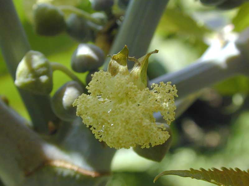 Castor oil male flowers at bottom of flower spike. (January, Bay of Plenty).
