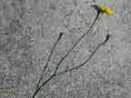 Perennial rosette-forming plant with a tap root. Leaves all basal, oblanceolate, toothed, c 25 x 100mm, covered with stiff hairs. Flowers yellow, dandelion-like c 25mm diameter on branched stalks which produce milk when broken. Involucral bracts have a row of hairs up the middle. Seeds attached to fluff for wind dispersion.