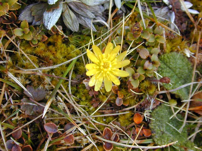Lobe leaved buttercup in alpine meadow. (August, Tararuas).