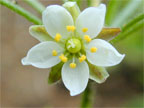 Short sprawling or erect annual with sticky hairs all over. Leaves linear in whorls. Flowers white, 4 - 8mm with five petals.