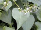 Climbing annual herb up to 1 m. The leaves are ovate. Flowers are greenish white, in spike like inflorescences. Fruit is a dull black, finely granular nut.