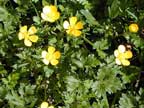 Hairy perennial plant with fibrous roots. Stems have stolons. Up to 70 cm tall with basal leaves on long petioles, of 3 lobes, the middle lobe stalked, which are also divided into 3. Upper leaves are sessile. (The shape of buttercup leaves varies accoding to where they are on the plant; the basal leaves are different from those on the flower stalk). Flowers upto 25 mm in diameter, yellow with 5 petals. Flowers are on furrowed, hairy stalks and sepals are hairy and not bent back.