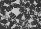 Minute black clusters of fungal spores, close to microscopic, found on newly dead herbage. Seen most commonly in spring and summer. Fungal spores look like hand grenades.