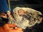 Yellowing of mucous membranes and sclera, liver damage (which may be seen as bile duct inflammation and occlusion, swelling, fatty infiltration, fibrosis, friability and typical boxing glove shape). Bladder mucosa shows ulcerative lesions.