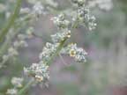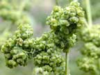 Upright branching plant (1.5m) from a taproot. The leaves are hairless, dull green with toothed margins (especially on the lower leaves) and broader at the base, the stems may be purplish. The flowers are a grey / green colour and are found in dense clusters at the end of the stems and branches. Size and shape of the plant vary enormously depending on the growing conditions.