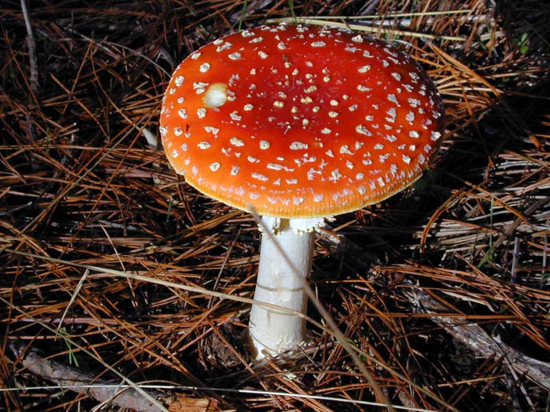 Typical form of fly agaric growing among pine needles. (January, Manawatu).
