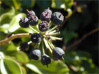 Ivy is a woody climbing or creeping vine with aerial roots. It has glossy evergreen leaves that have a leathery texture with the underside of the leaf being paler. Other possible variations in colour include yellow green edging of the leaf to yellow green all over. The young leaf is 3 or 5 lobed with the central lobe being the longest and the adult leaves are entire and can range in diameter from 4 to l0cm. Flowers yellowish green in globular clusters; smooth black globular berries approximately 8mm in diameter in winter.