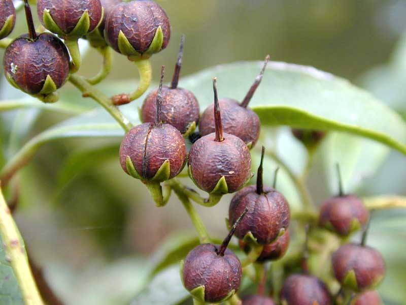 Lily of the valley bush ripe seed capsules. (September, Manawatu).