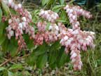 Dense woody shrub up to 3m tall. Pointed ovoid leaves up to 7cm long growing in coronet form around the stem. Leaves various shades of green and may be variegated. Flowers white to pink, drooping in grape-like bunches. They bear a passing resemblence to true lily of the valley.