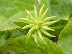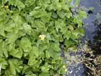 Looks like a large celandine. Up to 60cm high, heart shaped leaves about 10x15cm, yellow flowers about 30mm diameter and spiky fruit. Only grows on edges of water.