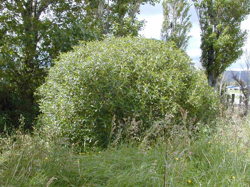 Typically shaped ngaio bush. It can eventually grow into a small tree. (January, Manawatu).