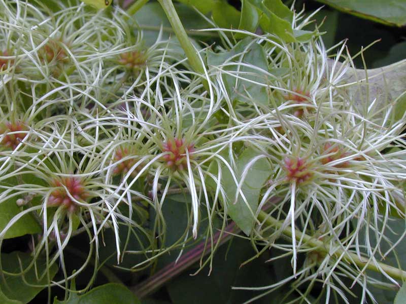 Unripe fruit. The silky awns turn into fluff (hence the "beard") and help the seeds blow away. (January, Manawatu).