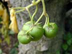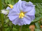 0.4-1m tall herb with erect, branched stem and underground stolons bearing tubers; leaves have alternating small and large leaflets; flowers are large, white, pink to pale violet: fruits are globose, greenish yellow, fleshy berries with numerous yellowish white seeds, but are not usually produced.