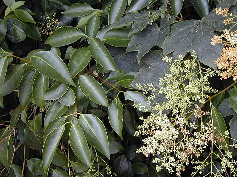 Tree or Japanese privet is larger and has bigger leaves (cf sycamore). (February, Manawatu).