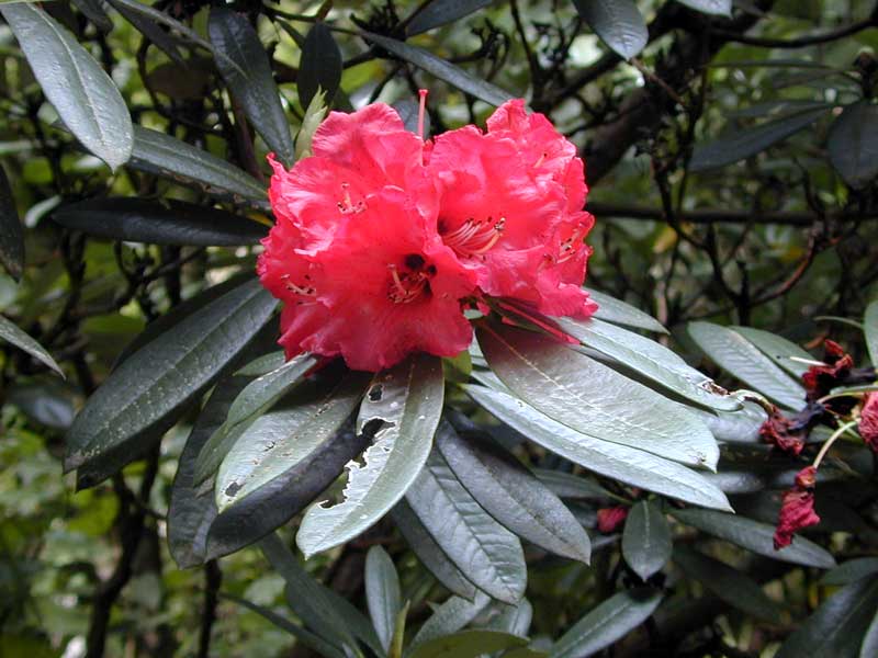 Flowers are usually shades of pink or purple, although yellow and white are possible. (October, Manawatu).