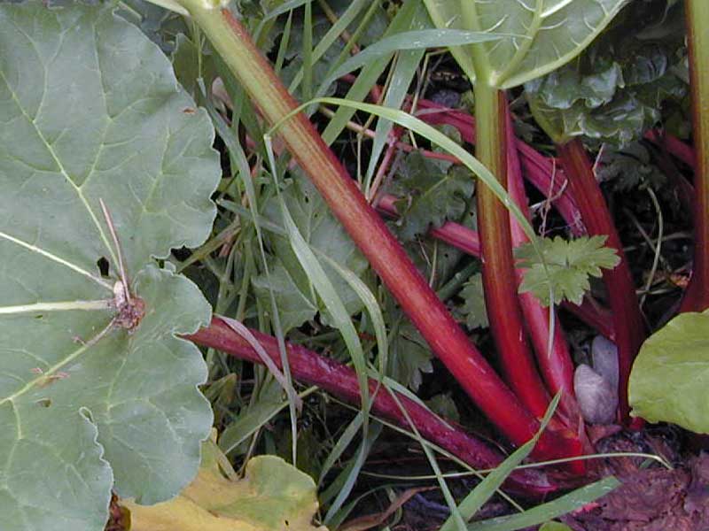 Rhubarb is grown for its stems, which have to be cooked before eating. (December, Manawatu).