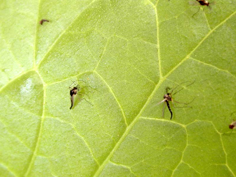 Insects stuck to the sticky leaf and killed by the nicotine. (February, Manawatu).