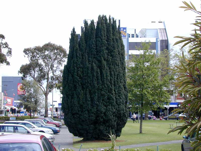 A large specimen of Irish yew, since cut down by PNCC's Environmental Vandalism Dept. (January, Manawatu).